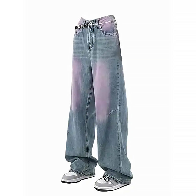 Damen Weite Baggy Jeans | Lila Farbverlauf