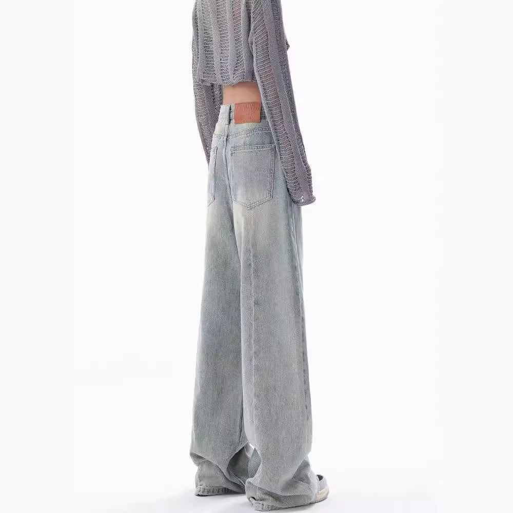 Diese Damen Baggy Jeans überzeugt mit weitem Bein und hohem Bund. Sie eignet sich perfekt für urbane Looks, Freizeit und Alltag und verbindet Komfort mit modischem Auftreten.